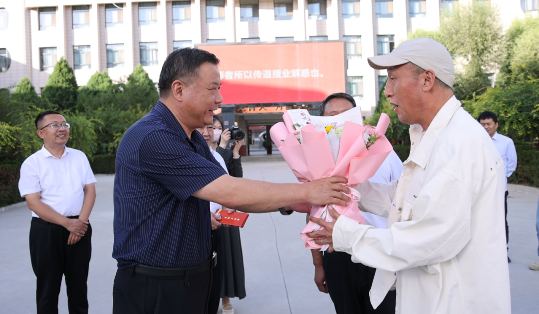 9月9日,在第41个教师节即将到来之际,县委书记封杰开展教师节走访慰问活动,向辛勤耕耘在一线的广大教育工作者致以节日祝贺和诚挚问候。副县长贺小明,县教体局负责人一同慰问。